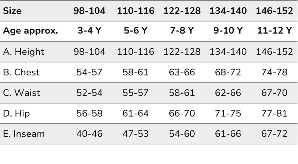 For example: if your child is 8 years old and 133 cm tall, you should select size 134-140.