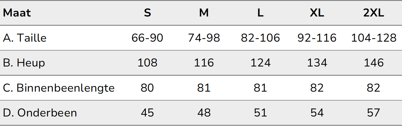Als jouw persoon tussen twee maten in zit, raden we je aan de grootste maat te kiezen.